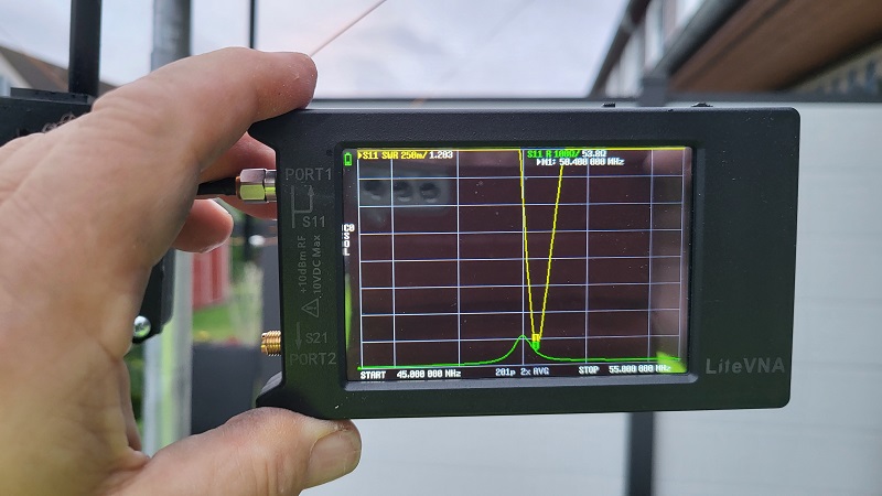 Bei mir waren die 50 Ω jedoch bei genau 60cm Boomlänge erreicht, es hat sich auch durch Abstandsänderung der Schleifen zueinander nichts geändert.