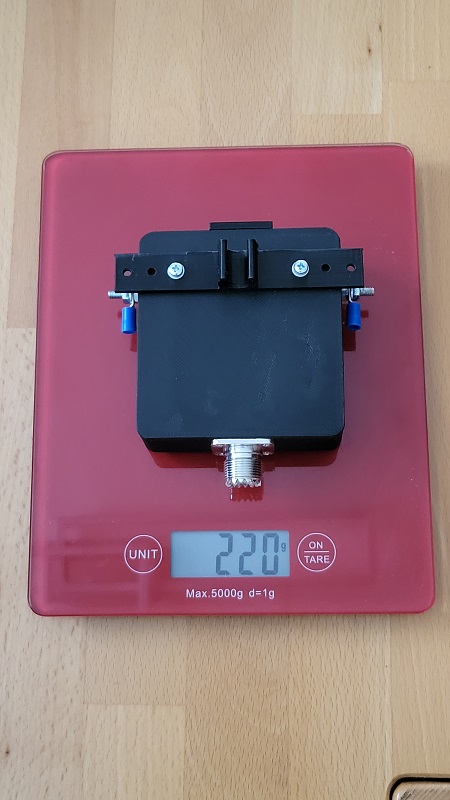 Das Gehäuse der Mantelwellensperre ist mit ebensolchem Clip, von hinten aufgeschraubt, befestigt und gesichert.